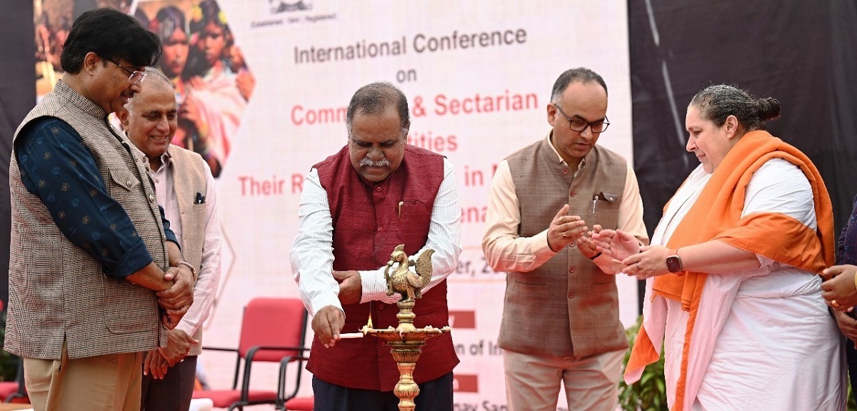 The inaugural lamp was lit by the Chief Guest and other dignitaries, marking the auspicious beginning of the conference. Prof. Amitabh Pandey, Director, IGRMS, extended a heartfelt welcome to all guests and highlighted the importance of hosting such a global academic dialogue at the museum. Shri Rajesh Prasad, Secretary, MAI, gave the introductory address, while Dr. Anand Burdhan, President, MAI, elaborated on the central theme, emphasizing the role of museums in representing community and sectarian identities in today’s multicultural world.
